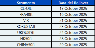 Avviso di Rollover CFD per ottobre