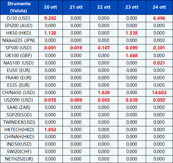 Si prega di notare che i dati sopra riportati sono soggetti a modifiche. Si prega di fare riferimento a MT4/MT5 per i dettagli.