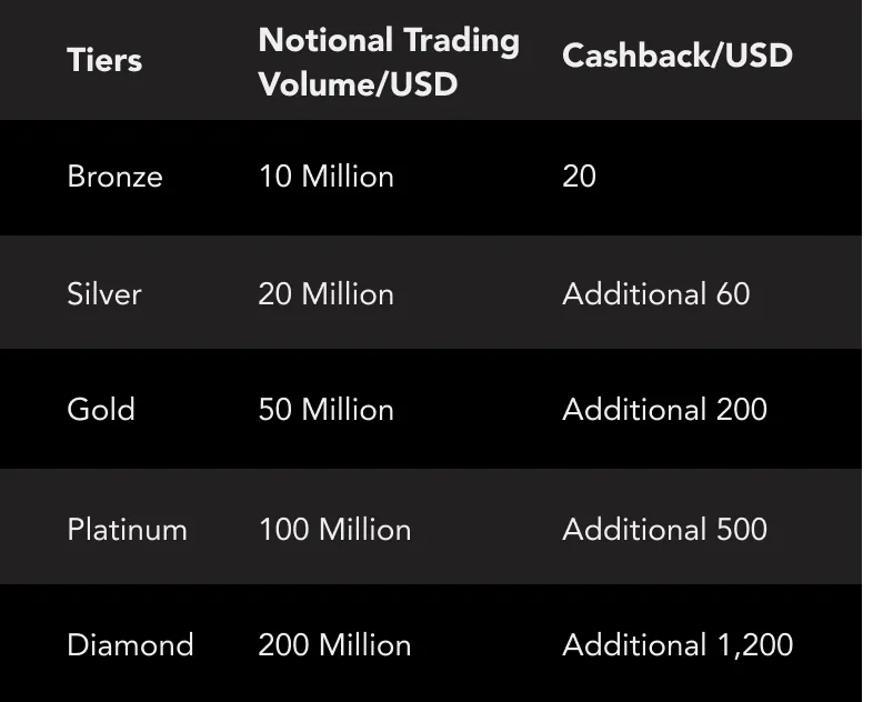 *If there are multiple trading accounts under the same client’s name, clients need to select one of them to activate the promotion and receive the cashback, but the deposit requirement and trading volume will be calculated for all eligible accounts combined.