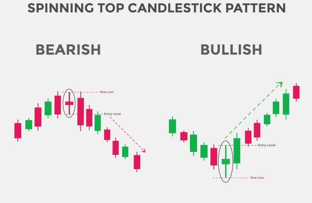 Quando una trottola appare alla fine di un forte trend rialzista o ribassista, spesso segnala che lo slancio prevalente si sta indebolendo. In un trend rialzista, può suggerire che il controllo rialzista sta svanendo, aprendo la strada a una potenziale inversione. Al contrario, in un trend ribassista, può indicare che la pressione di vendita si sta esaurendo, creando un'opportunità per gli acquirenti di prendere il sopravvento.