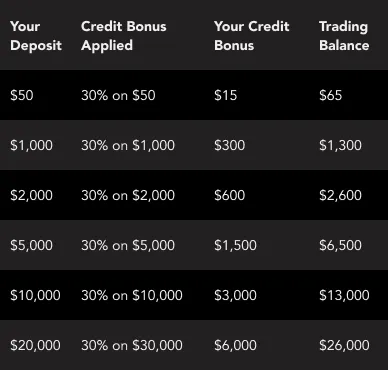 4.Eligible Clients (both new and existing clients), who meet the criteria set forth herein are able to receive credit bonuses or otherwise known as trading credit, equal to: