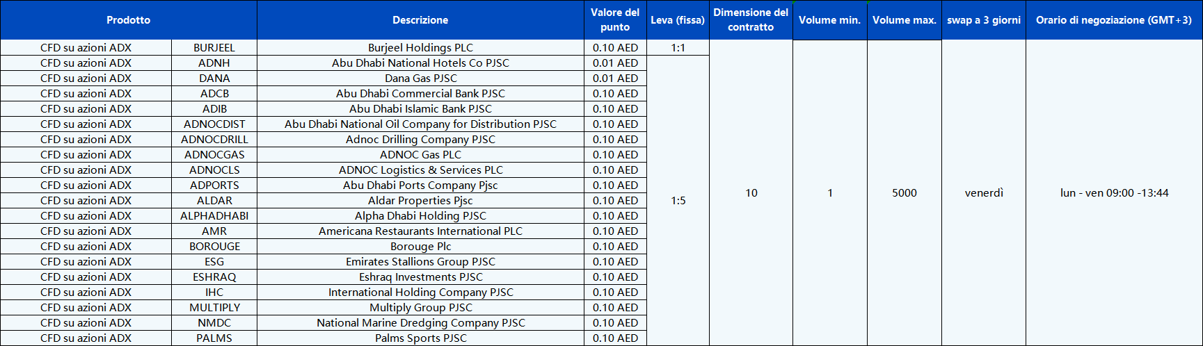 Si prega di notare che i dati sopra riportati sono soggetti a modifiche. Fare riferimento a MT5 per ulteriori dettagli.