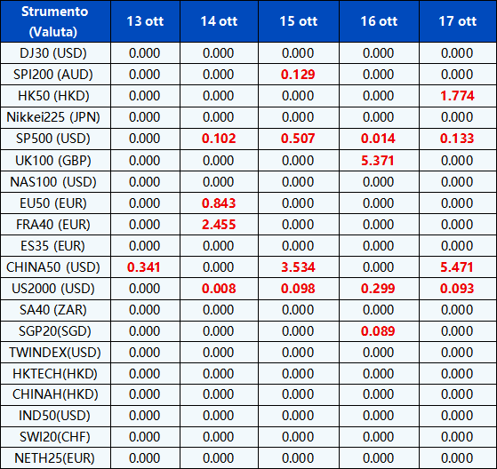 Si prega di notare che i dati sopra riportati sono soggetti a modifiche. Si prega di fare riferimento a MT4/MT5 per i dettagli.