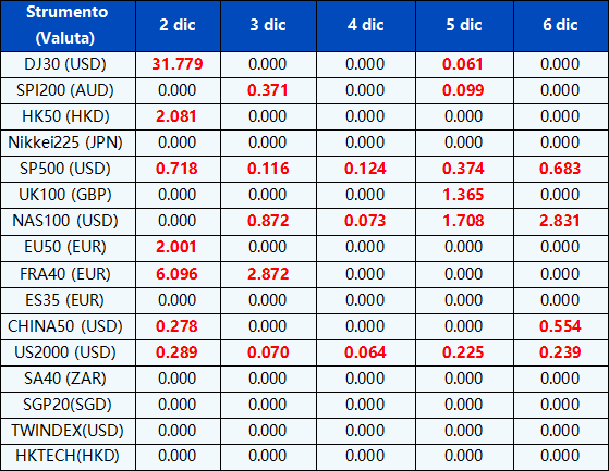 Si prega di notare che i dati sopra riportati sono soggetti a modifiche. Fare riferimento a MT5 per ulteriori dettagli.