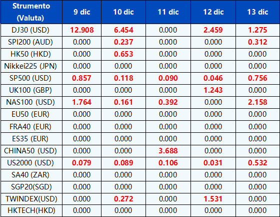 Si prega di notare che i dati sopra riportati sono soggetti a modifiche. Si prega di fare riferimento a MT4/MT5 per i dettagli.