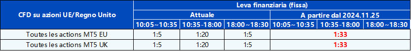 Si prega di fare riferimento alla tabella sottostante per l’adeguamento dei CFD su azioni UE/UK: