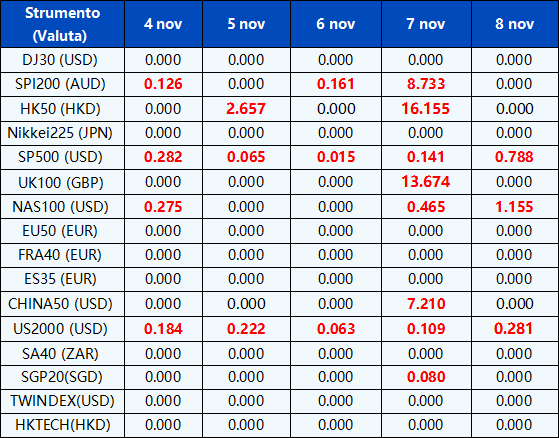 Si prega di notare che i dati sopra riportati sono soggetti a modifiche. Si prega di fare riferimento a MT4/MT5 per i dettagli.
