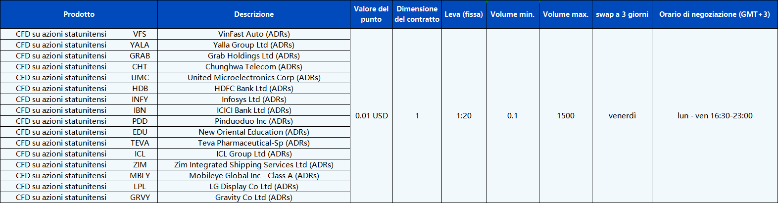 Siamo lieti di annunciare che PU Prime lancerà nuovi prodotti di ADR di azioni statunitensi in CFD sul server MT5 a partire dal 28 ottobre 2024, per offrire ai clienti un portafoglio di prodotti più ampio.