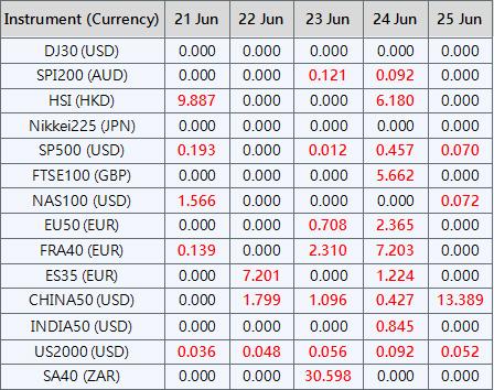 Please be advised that the dividends of the following index CFDs will be adjusted by upcoming ex-dividend dates. The comment for trading index CFDs will be in the following format “Div&<Product Name>&<Net Volume>” which show in the balance after the close of the day before the dividend payment date.