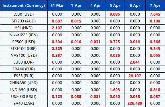 Please be advised that the dividends of the following index CFDs will be adjusted by upcoming ex-dividend dates. The comment for trading index CFDs will be in the following format “Div&<Product Name>&<Net Volume>” which show in the balance after the close of the day before the dividend payment date.