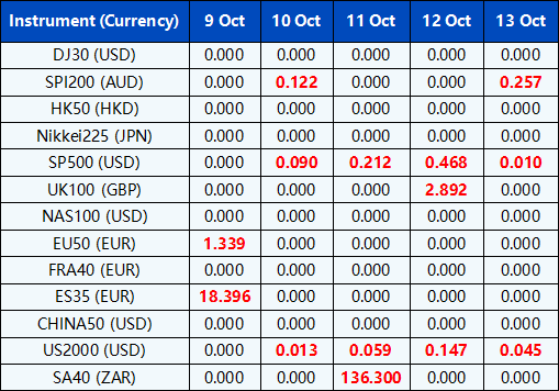 Please note the above data are subject to changes. Please refer to MT4/MT5 for details.
