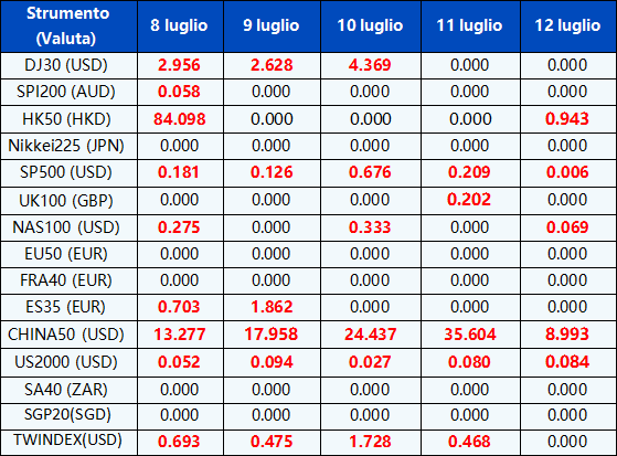 Si prega di notare che i dati sopra riportati sono soggetti a modifiche. Si prega di fare riferimento a MT4/MT5 per i dettagli.