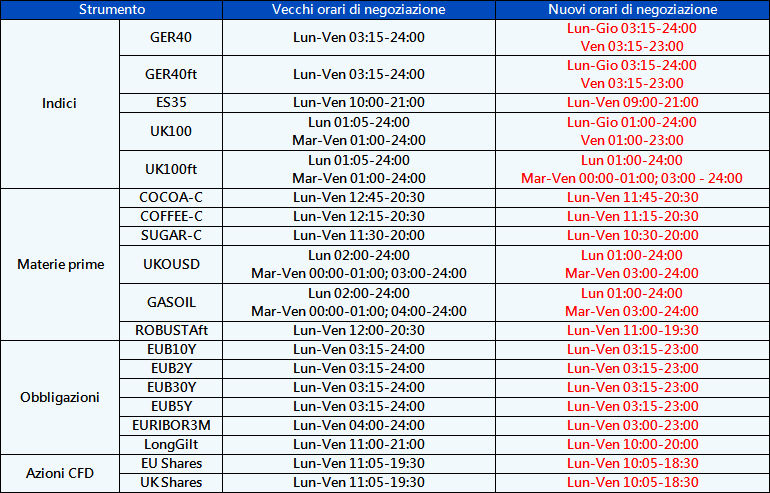 Si prega di notare che i dati sopra riportati sono soggetti a modifiche. Si prega di fare riferimento a MT4/MT5 per i dettagli.