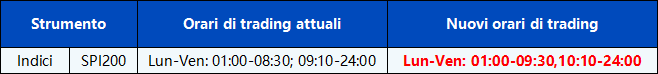 Si prega di notare che i dati sopra indicati sono soggetti a modifiche. Consultare MT4/MT5 per i dettagli.